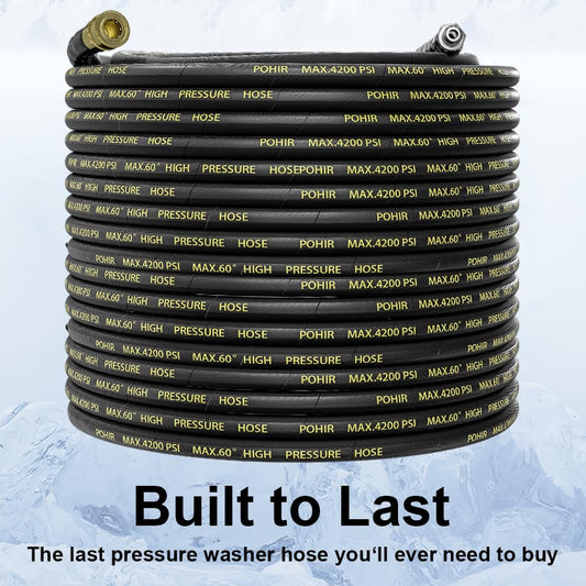 POHIR Pressure Washer Hose 100ft*1/4 with Quick Connect, Kink Free 4000 PSI M22 14/15mm Thread Compatible