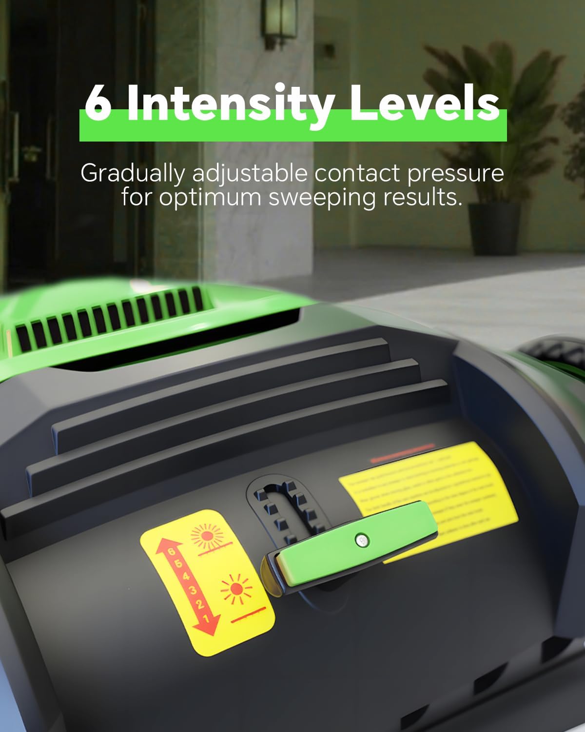 - [ECO FRIENDLY DESIGN]: Totalmente mecánico (sin energía/combustible), eliminando costos de energía, mantenimiento de baterías y emisiones. Simplemente mantenga limpiando el rodillo y el contenedor de polvo periódicamente.