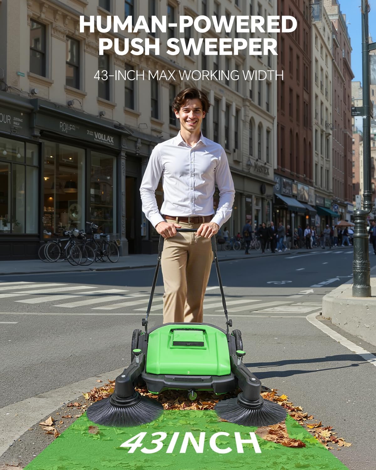 - [41-INCH EXTRA-WIDE DESIGN]: El barredor de césped manual con una cobertura máxima de 46,000 sqft/h, este limpiador ofrece 12 veces la eficiencia de los métodos tradicionales, reduciendo significativamente el trabajo repetitivo. Su gran capacidad de paso único despeja sin esfuerzo hojas, grava, desechos y más, lo que lo hace ideal para áreas abiertas como jardines, garajes, almacenes y otros espacios amplios.