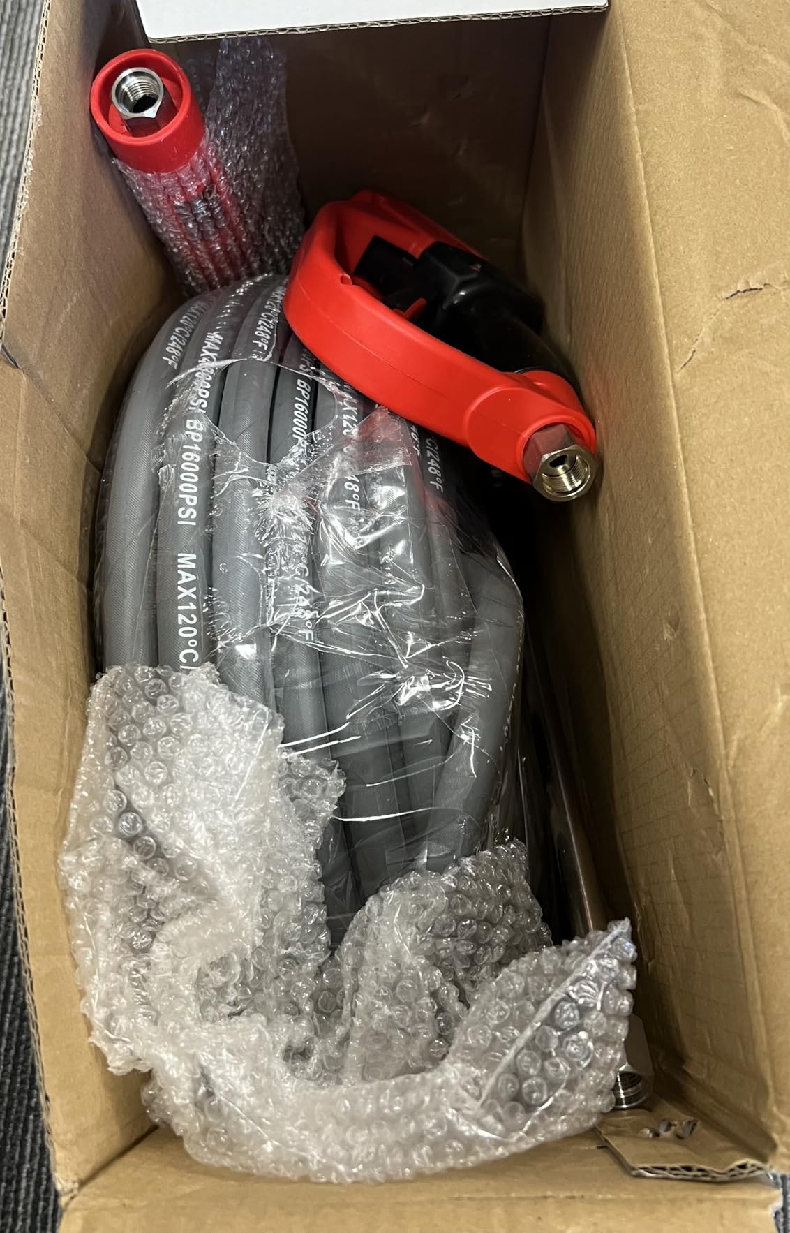 Very nice pressure washer hose and gun kit.This hose exceeds the pressure that my pressure washer can generate by 1000 pounds and certainly hotter water than my home water heater can generate.I like the fact that the wand is short for certain jobs, and with a quick connection of the extension, have a normal sized washing wand. Also comes with all the normal size spray tips, and a very nice holder to keep them from wandering off.Although I will only be using the quick couplings, it is nice to have the option to use other fittings should need arise.I believe this is a quality pressure washer hose kit, and I would order it again