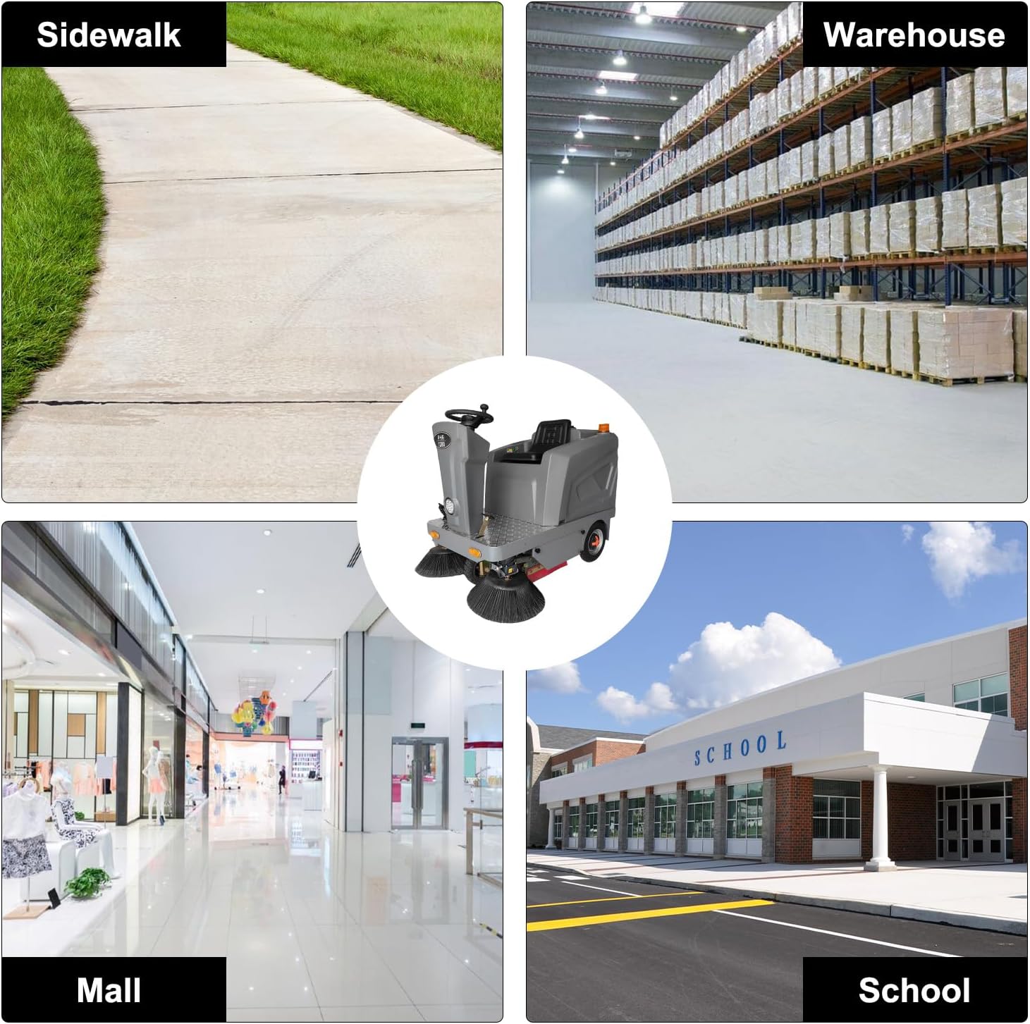 - [AMPLIAMENTE APLICABLE]: Nuestro barredor se adapta sin esfuerzo a cualquier superficie, lo que lo hace ideal para limpiar aceras, garajes, almacenes, carreteras, escuelas, hospitales, centros comerciales y más
