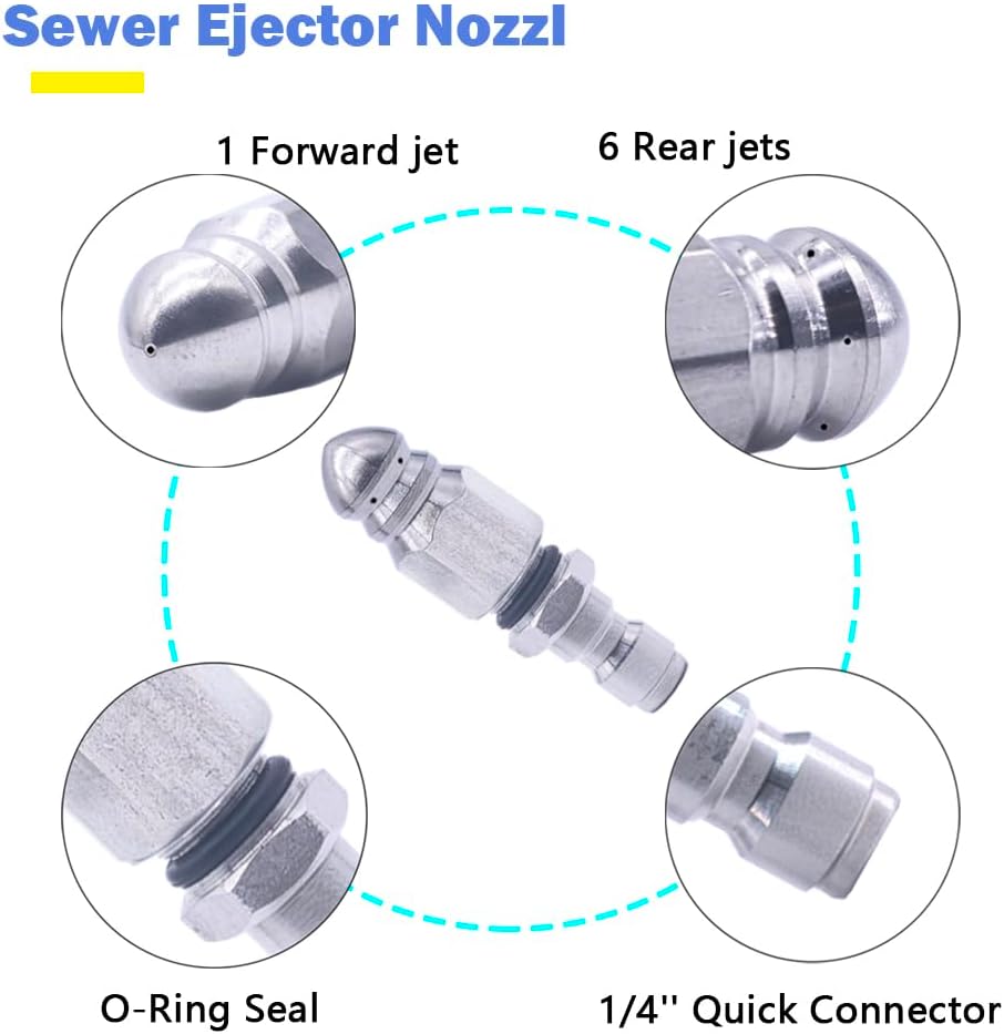 Boquilla de desatascador de alcantarillado, boquilla de manguera de desatascado de alta presión, con conector rápido de acero inoxidable de 1/4'', 5000 PSI