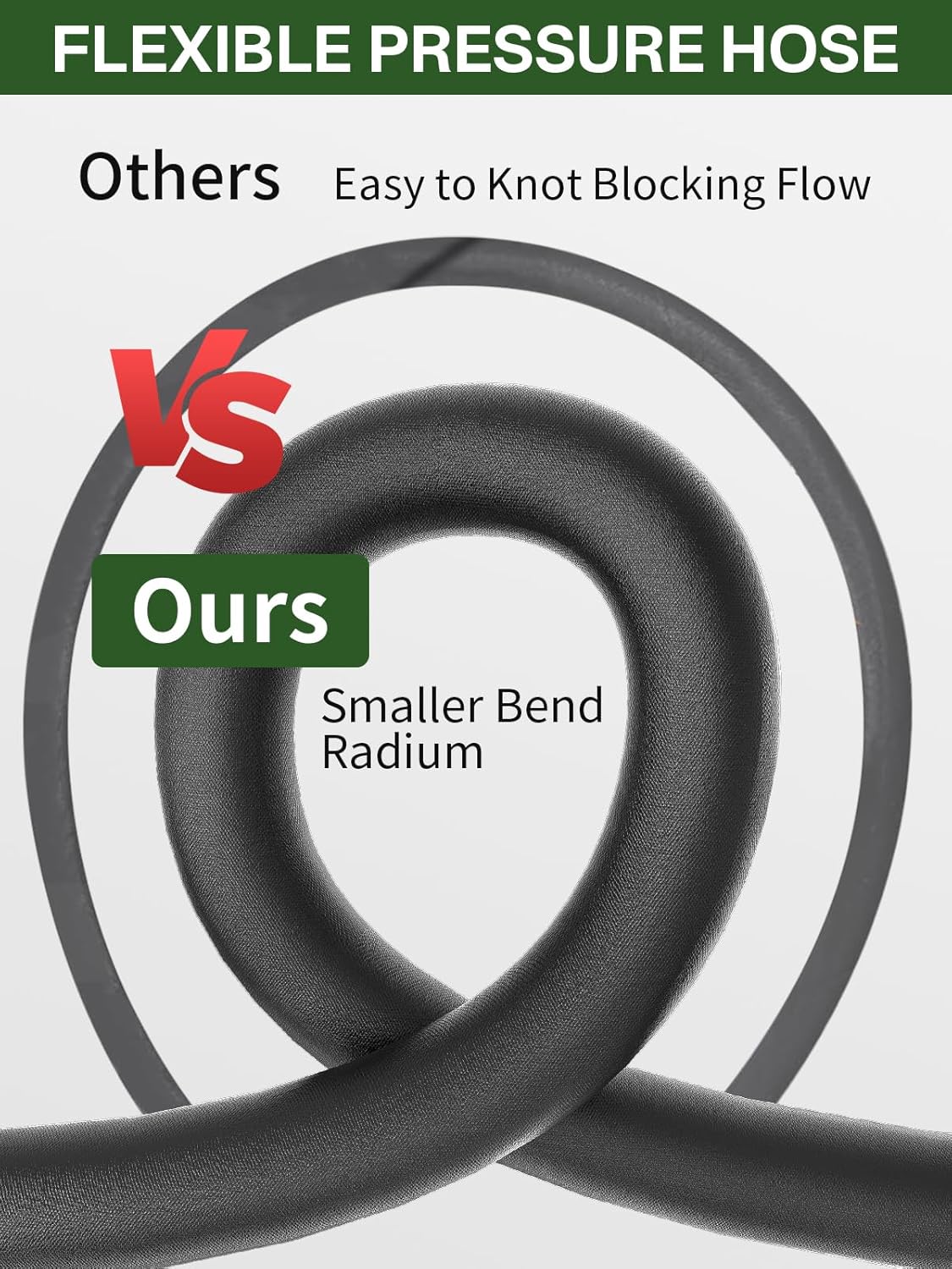 - 【Swivel Quick Connect Kink Resistant】4800 PSI high pressure washer hose is equipped with a swivel 3/8" quick connect, which will help you relax more, no hose kinks, and can be used at any angle. It is also equipped with 2 M22 14MM adapters, which can handle the cleaning work easier and faster, better support your home washing car, motorcycle, floor, window, driveway, roof, siding.