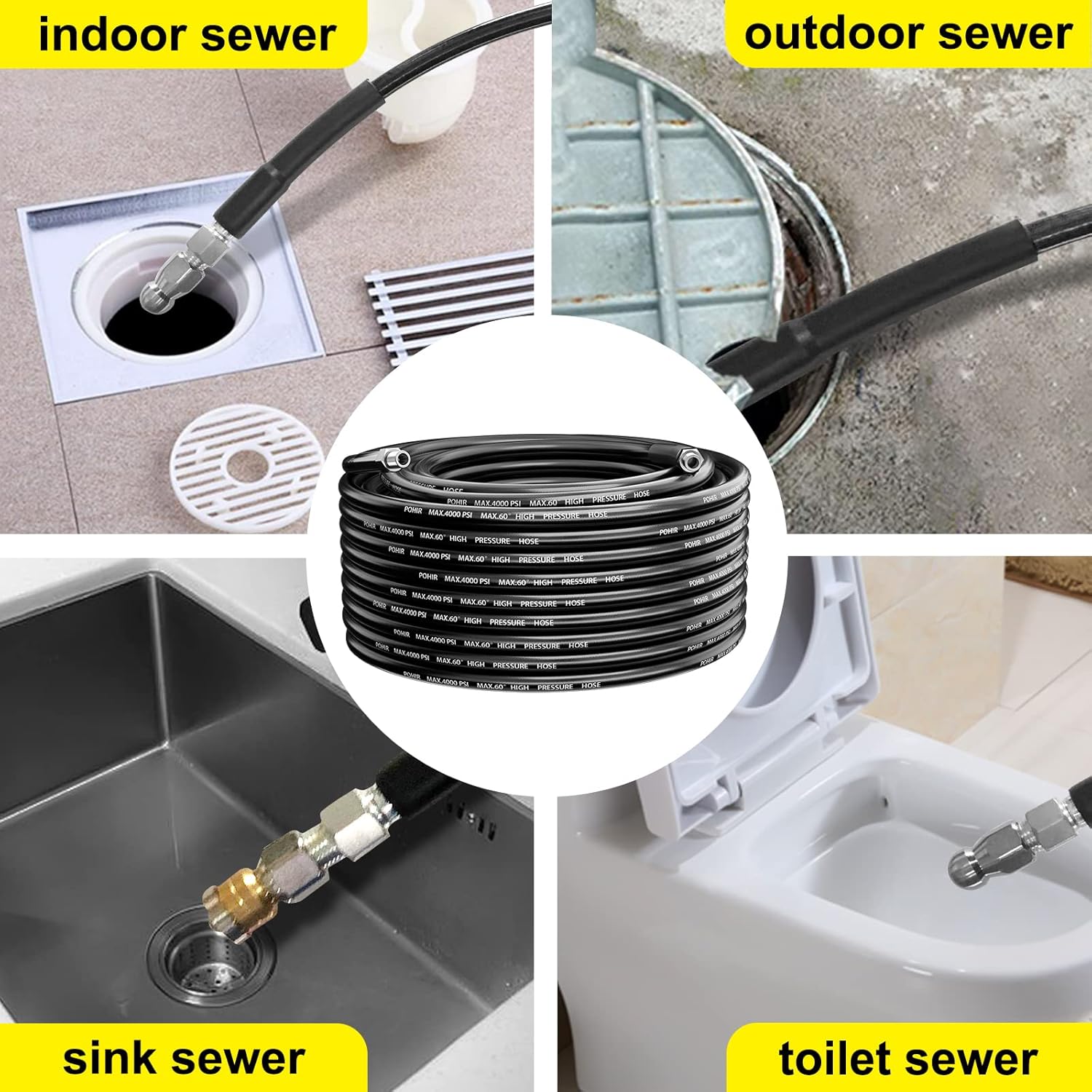 POHIR Sewer Jetter Kit for Pressure Washer, 4200 PSI Drain Cleaner Hose