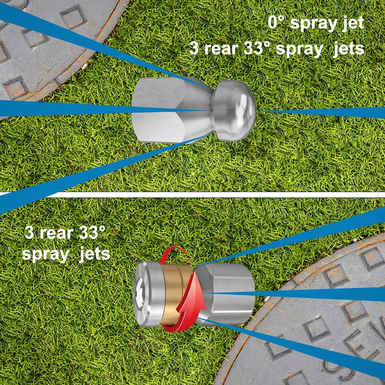- Rotating sewer nozzle + button nose nozzle