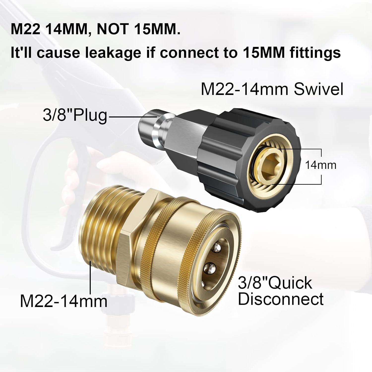 - Easy Connect & Disconnect: M22 quick connect fittings help pressure washer hose quick connect to pressure washer pump or gun. The 3/4 quick coupler fits all 3/4" 3/4" GHT (garden hose thread) watering equipment.